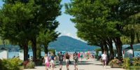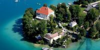 Öffentlich zugänglicher Garten von Schloss Maria Loretto mit schönem Blick auf Wörthersee, Innenhof Schloss Welzenegg, Museumstramway, Wörthersee Schifffahrt, Schloss Krastowitz Bildungshaus